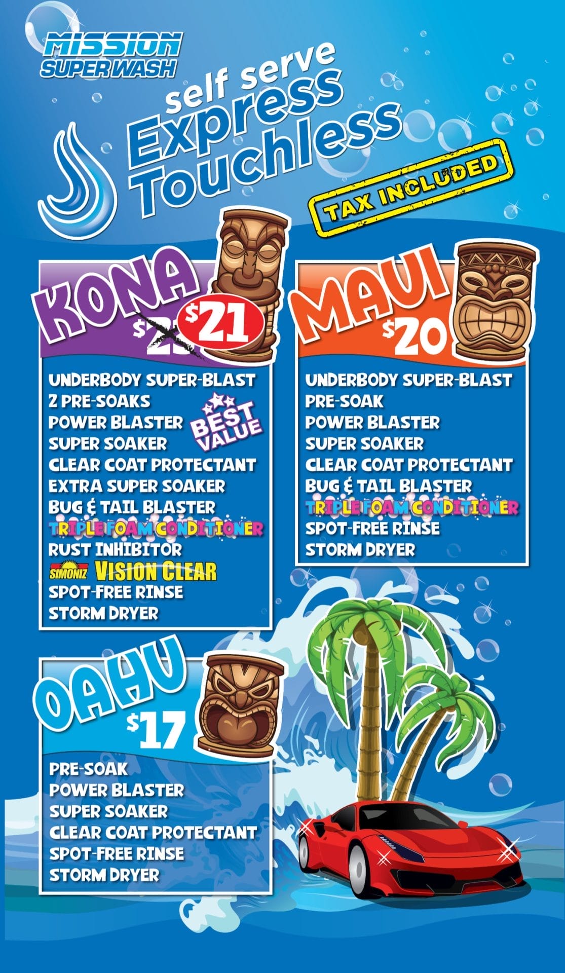 The touchless car wash at Mission Super Wash provides a meticulous cleaning service that uses high-pressure water jets and detergents, ensuring your vehicle is cleaned thoroughly without any physical contact that could scratch the paint. This method is not only efficient but also gentle on your car, offering a spotless finish in minutes.
